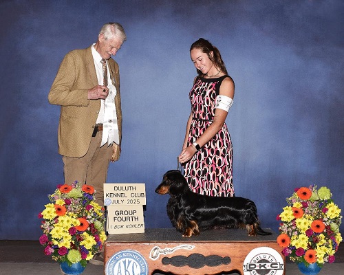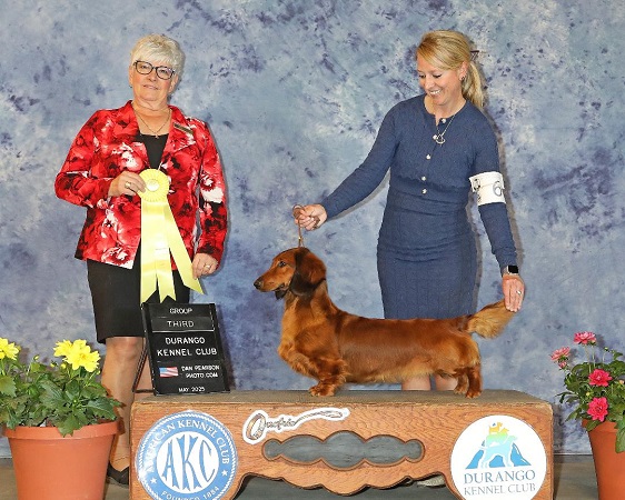 SOOOOO Excited to Welcome Vienna, all the way from CANADA!!!!!! My very first official STANDARD Dachshund. This girl is stunning and sooooo very sweet. I have big plans for her. Many Thank yous to Tina Gibson for letting her come on down to the States we hope to do you proud:) During Vienna's first Show weekend, She went back to back in Groups! getting both of her Majors taken care of! with Kat at the helm and we couldn't be more proud! Sausage finished her AKC Championship in just TWO Weeks with 3 Group Placements from the Classes!